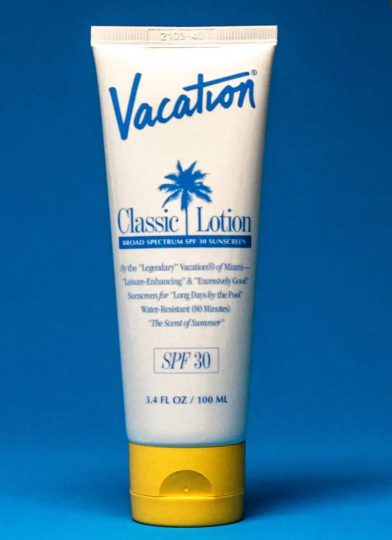 Created in collaboration with Arquiste Parfumeur, the lotion features Vacation’s world-famous scent, a nostalgic blend of coconut, banana, pool water, pool toy, and swimsuit lycra that bottles summer itself.